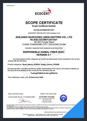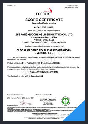 In diesen Jahren haben wir uns auf funktionelle, organische und natürliche Stoffe konzentriert und haben bereits GOTS-, OCS-, GRS-, RWS- und 0EKo-tex100-Zertifikate erhalten.